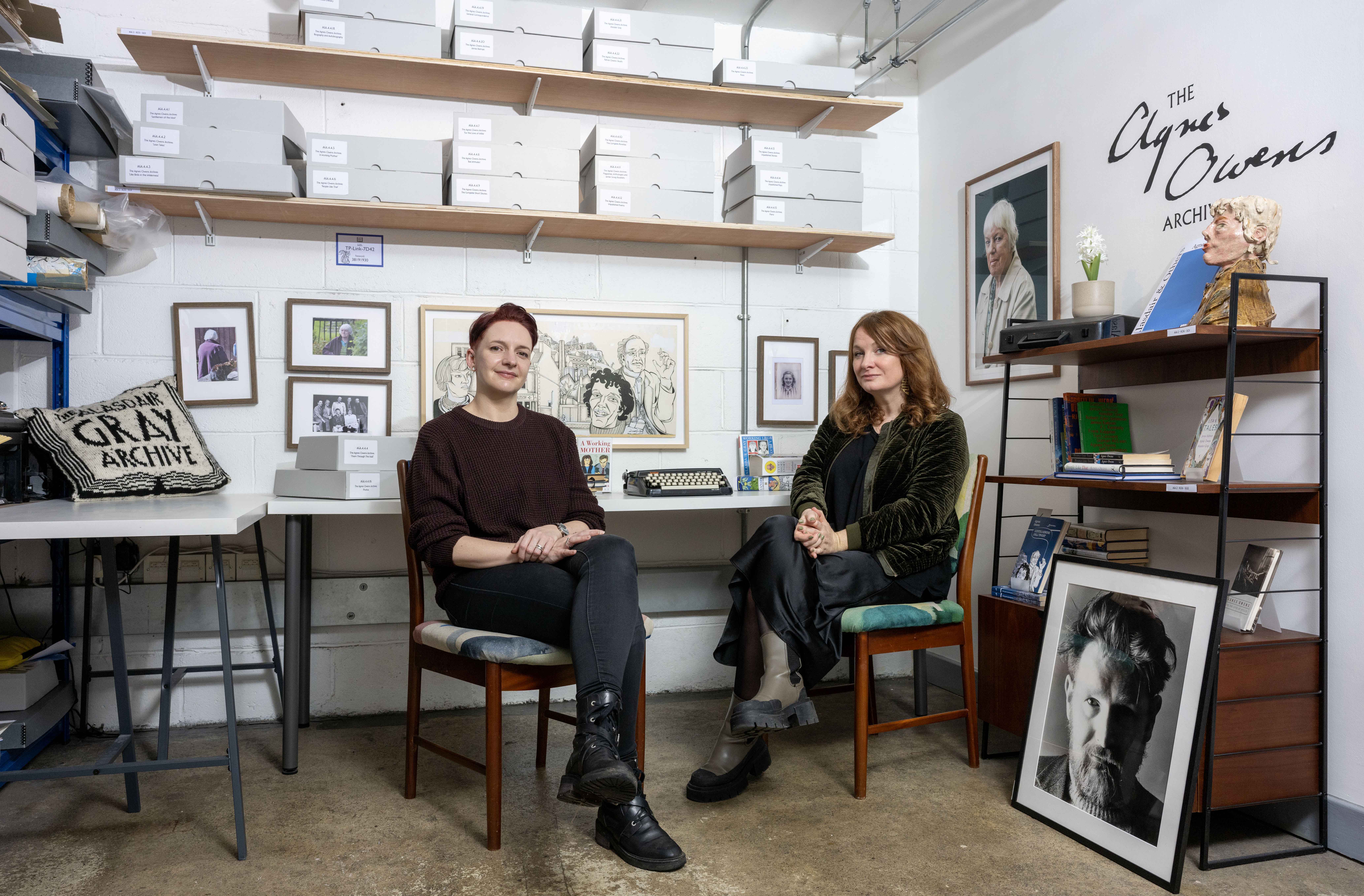 ▴ Kirstin Innes and Heather Parry at the The Alasdair Gray and Agnes Owens Archive, image credit: Neil Hanna